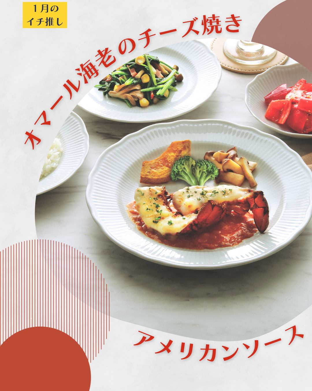 西洋料理の代表的な高級食材である「オマール海老」に手作りホワイトソースをのせ、上にチーズをのせました。